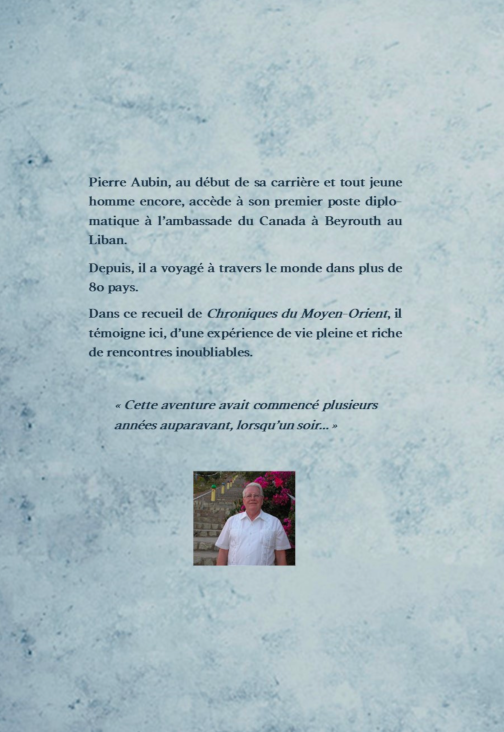 Le livre est composé de 37 chapitres, la plupart orientés vers le Moyen-Orient où Pierre a passé une grande part de sa carrière diplomatique. Il y a aussi des chapitres dédies à ses proches, d’abord son épouse Aline Laliberté, et ses enfants Natalie, Frédéric, François, Jérôme et Simon.