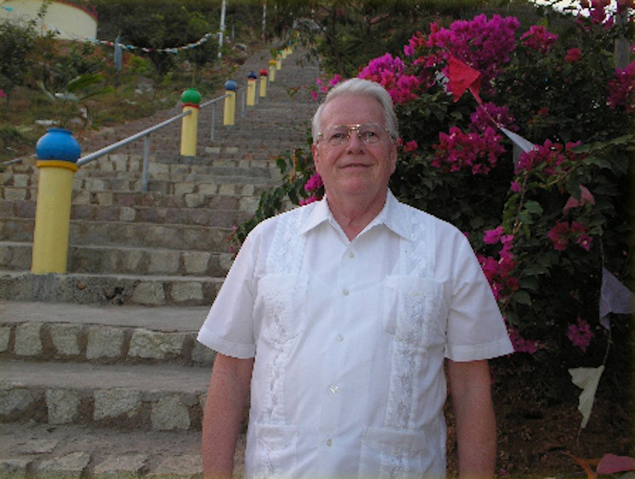 Pierre Aubin au pied du chemin de croix