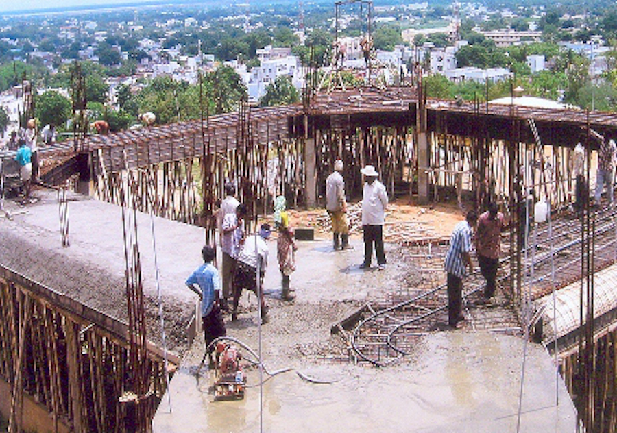 Vue aérienne de la Basilique en construction