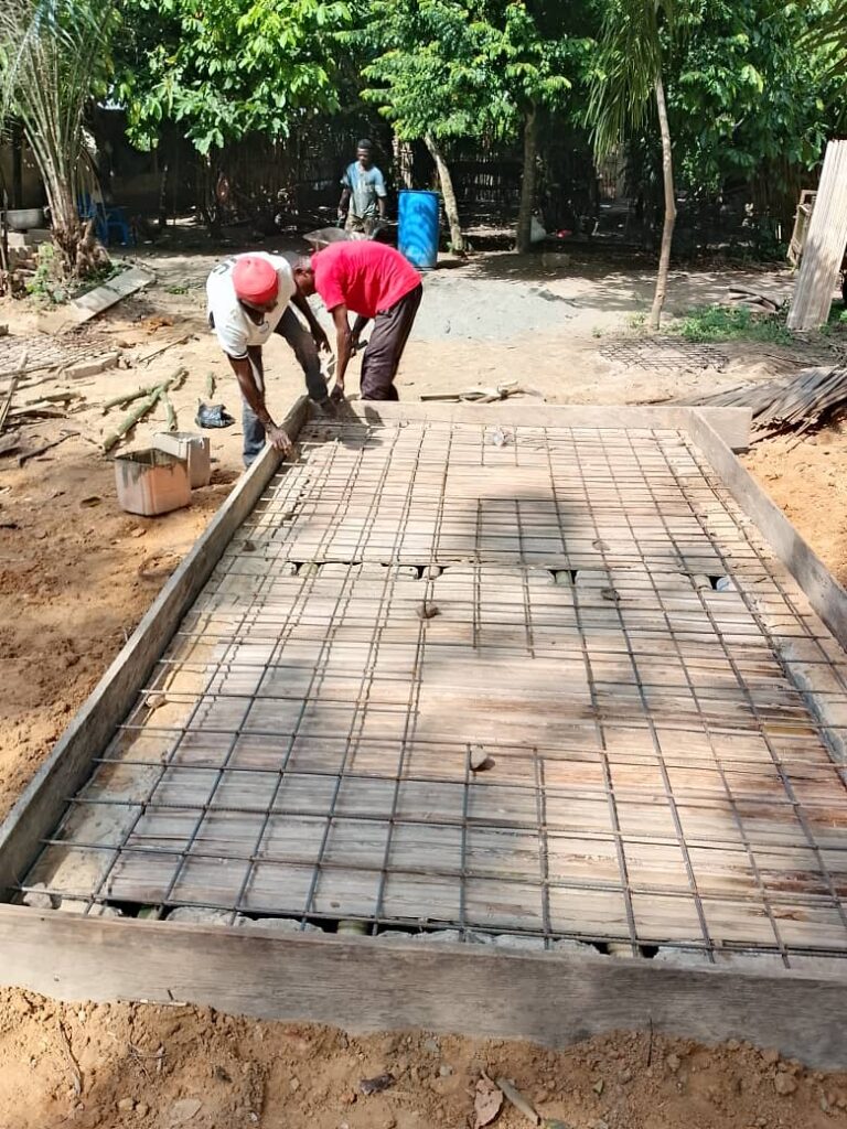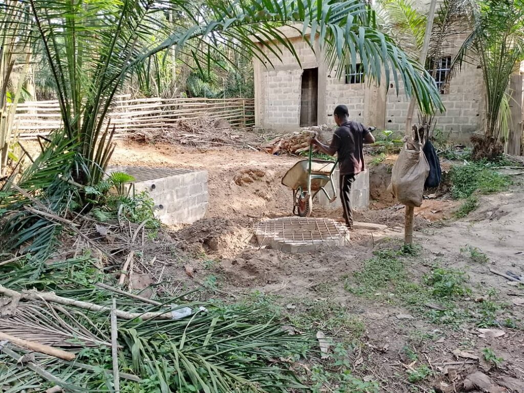Après les gros travaux qu’ont été la coulée de la dalle du premier étage et des escaliers attenants, les travaux avancent au Centre Agropastoral Mokpokpo, notamment avec la préparation de la fosse septique.