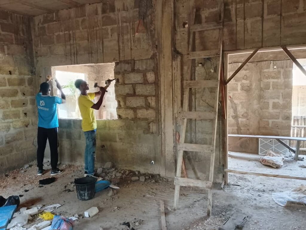 D’autres travaux tels que la protection des ouvertures de fenêtre et de porte sont en cours.