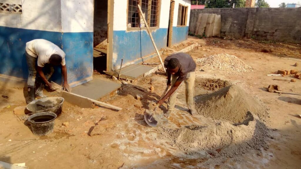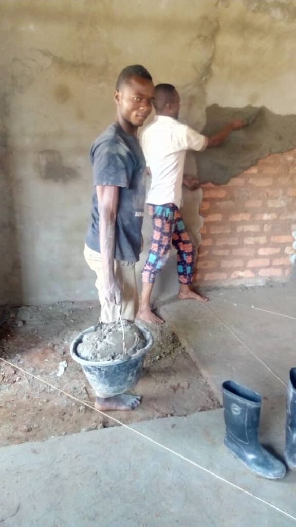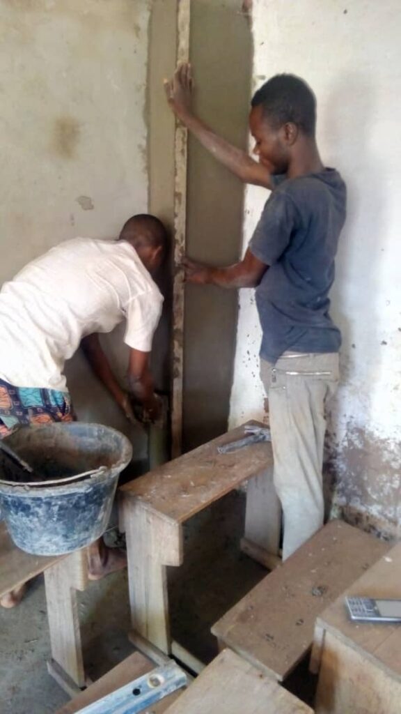 Denise Poitras Lajoie, qui a déjà soutenu plusieurs projets de la fondation, a répondu à l’appel de la sœur Kaya Nsonyi et rapidement, 1500 $ ont été transférés. Ainsi, les travaux de crépissage ont pu commencer dès le 14 septembre avec comme objectif d’achever les travaux avant le 20 septembre, date de la rentrée scolaire.