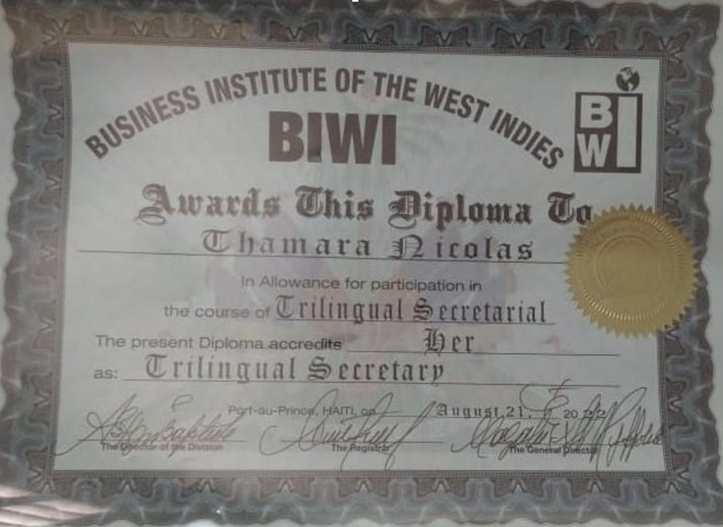 Louise et ses amis ont soutenu Thamara en couvrant ses frais de scolarité à la hauteur de 4.000 dollars canadiens sur deux ans. Thamara a conclu sa scolarité avec succès et ai maintenant titulaire d’un diplôme de l’institut B.I.W.I.